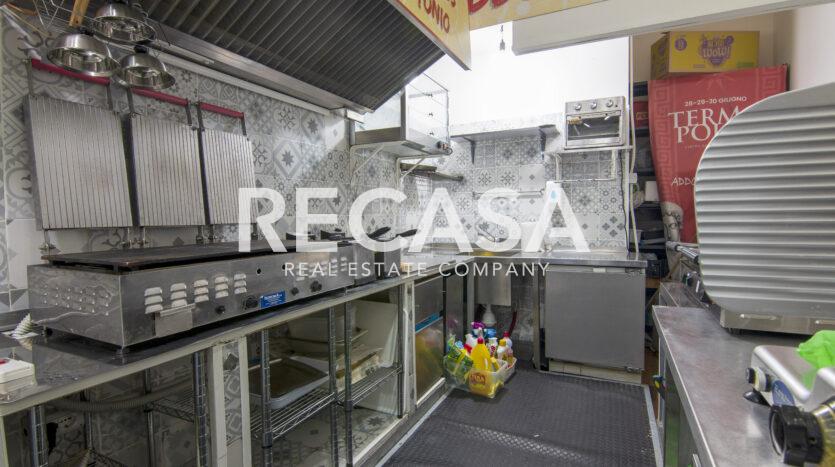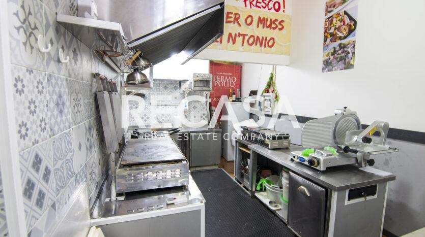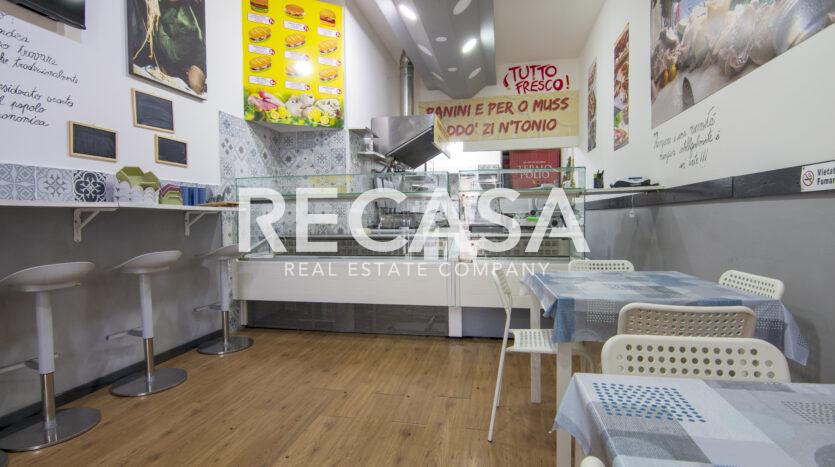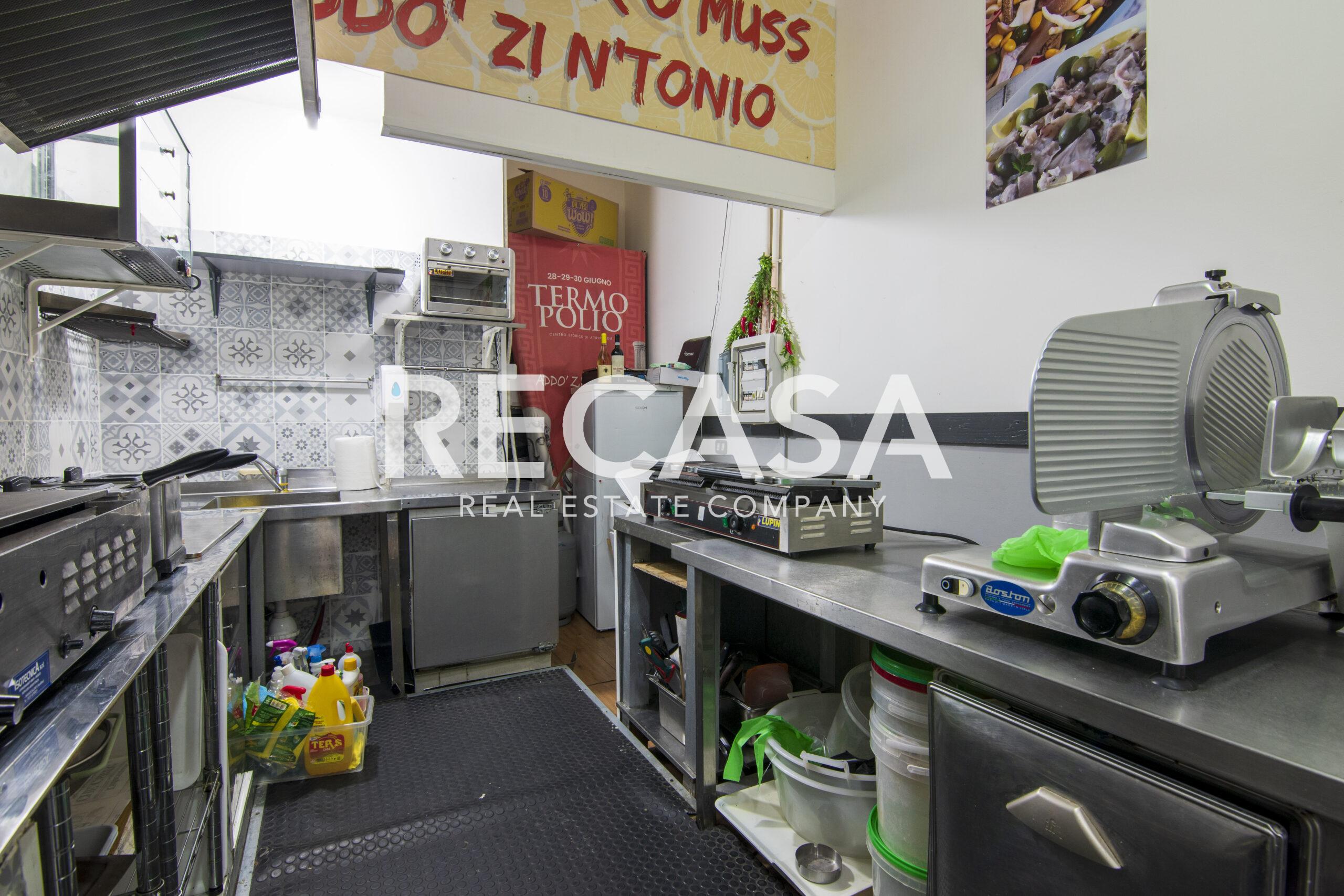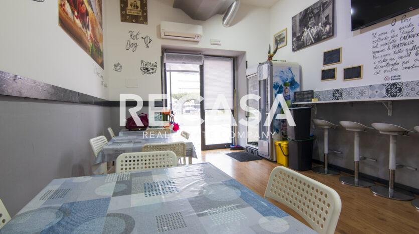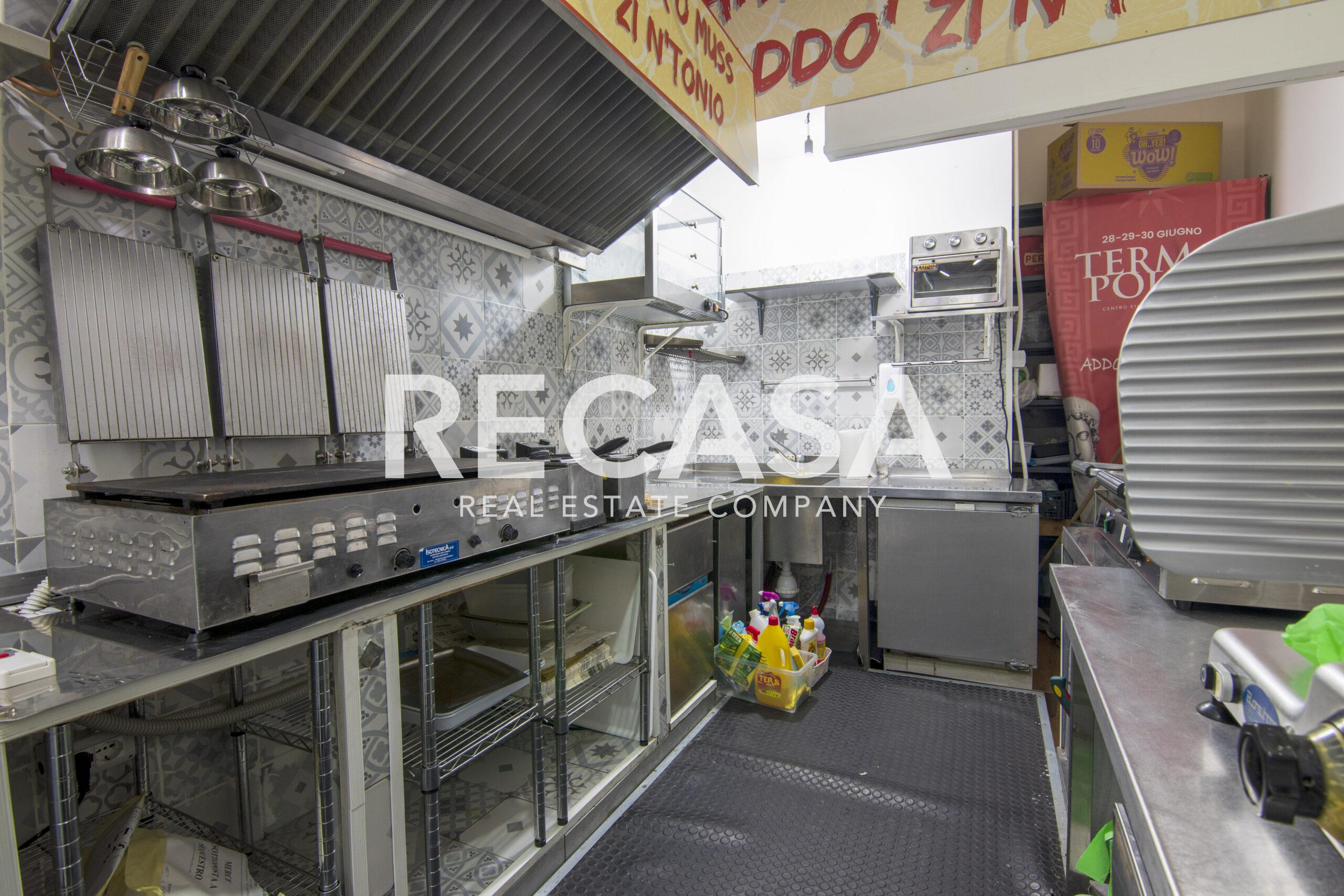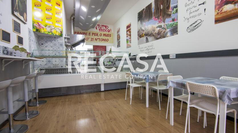Al piano terra, ambiente unico di 40 mq con comodi posti a sedere, bancone e cucina, al piano seminterrato del locale, raggiungibile con scala interna, comodo deposito di 40 mq e wc.